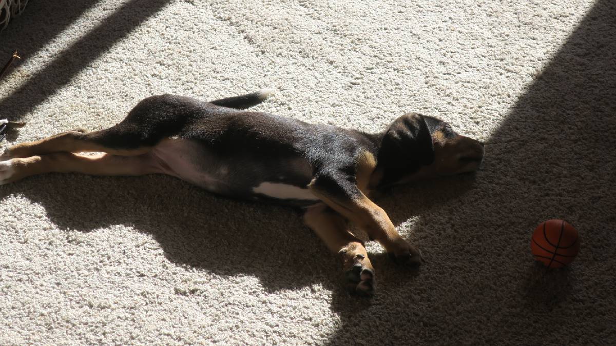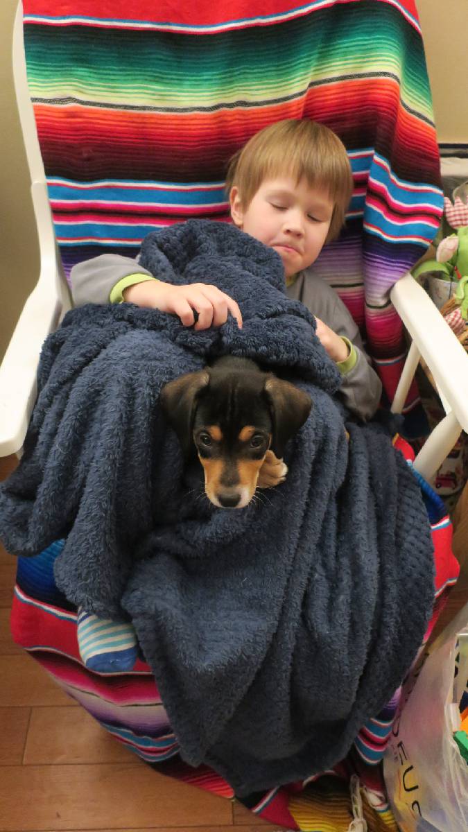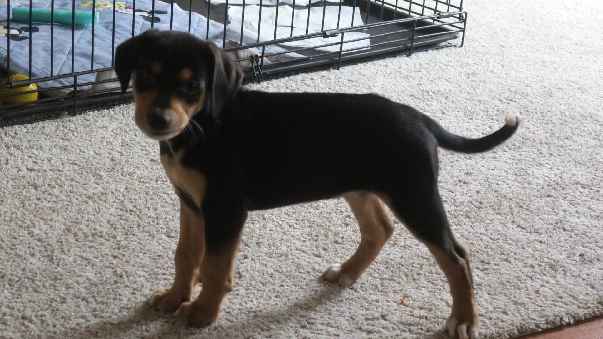 И вот достался нам просто щенок, девочка, 2 месяцев отроду, смешанных кровей-лабрадор и немецкая овчарка, и я думаю и бигель там бегал, мальчиков уже разобрали.