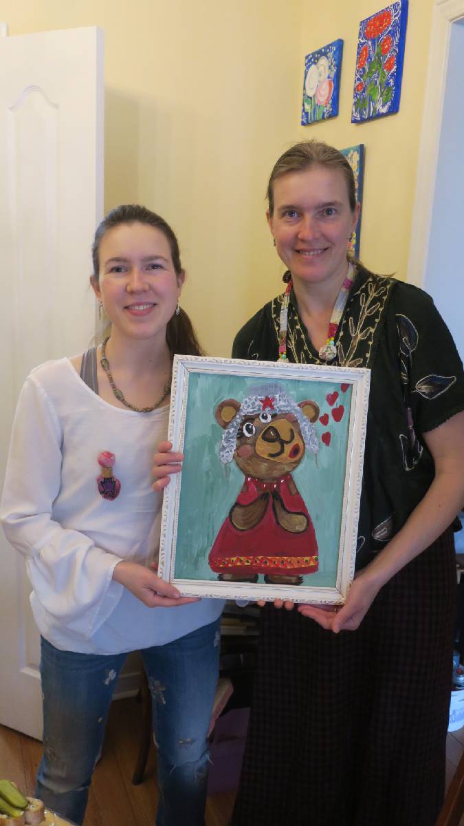 А еще сделала шерстяную брошку с вышитым пещерным медведем. Соня забежала днем на чаек, вечером у Сони был концерт и Соня играла на флейте! Соня потрясающая певица, музыкант, автор песен и стихов, учитель!