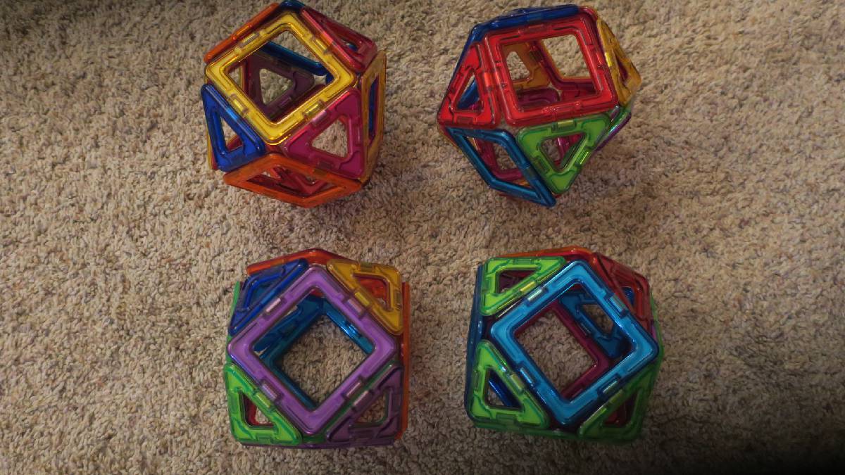 Тима с увлечением играл в магнитный конструктор-у него получилось три магнитных набора и Тима много чего из них придумывал сам и собирал по схемам.