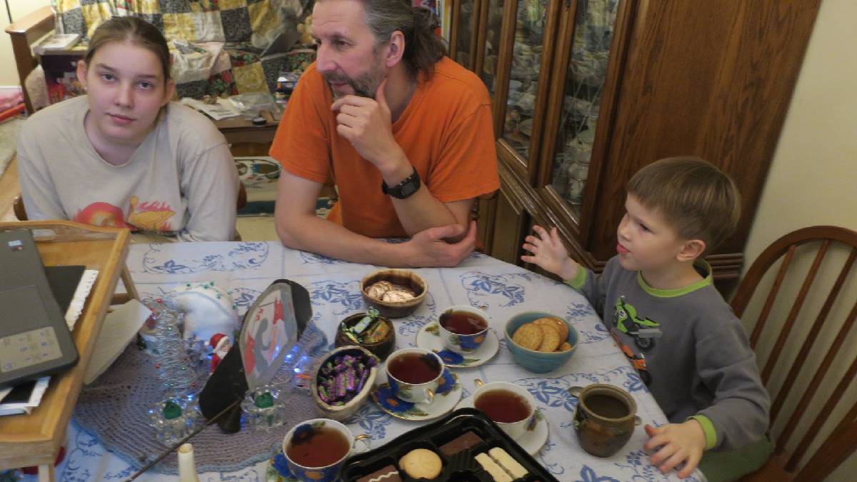 Читали "бабушка, кричит Фридер!". Тима слушал Механического деда Мороза, Эмиля, Умную собачку Соню, матушку Метелицу...Начали смотретьЭмиля , немецкий фильм.