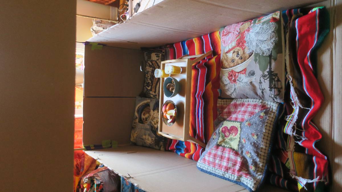 Слава делает ремонт и мы устанавливали ванну. А Тима любит коробки, а тут коробища! И Тася помогла Тиме построить дом! Больше недели дом стоял в комнате, в нутри можно было пить чай, а потом дом разобрали и сразу стало просторно, вот сколько пользы от дома.